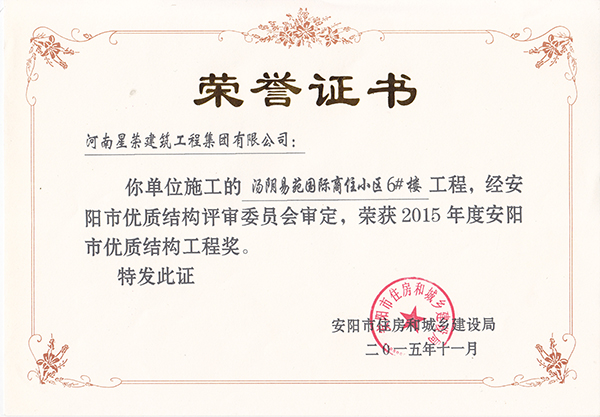 2014東方名苑15#樓優(yōu)質(zhì)結(jié)構(gòu)